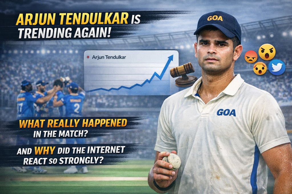 Arjun Tendulkar is trending across Google and social media once again. But what really happened in the match, and why did the internet react so intensely? This blog breaks down the event, the reactions, and the bigger reason behind the recurring hype — beyond just cricket scores.