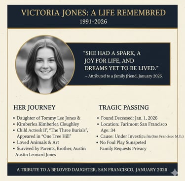 Emergency services were dispatched to the luxurious Fairmont San Francisco hotel shortly before 3:00 a.m. on January 1, 2026. A hotel guest reportedly discovered Victoria unresponsive on the 14th floor and immediately alerted staff. Despite rapid response from hotel personnel and paramedics, Victoria Jones was pronounced dead at the scene. Authorities have confirmed that there were no immediate signs of foul play or trauma. While early emergency dispatch audio alluded to a suspected overdose, the official cause and manner of death are currently pending investigation by the San Francisco Medical Examiner’s Office. The family has requested privacy during this immensely difficult time.